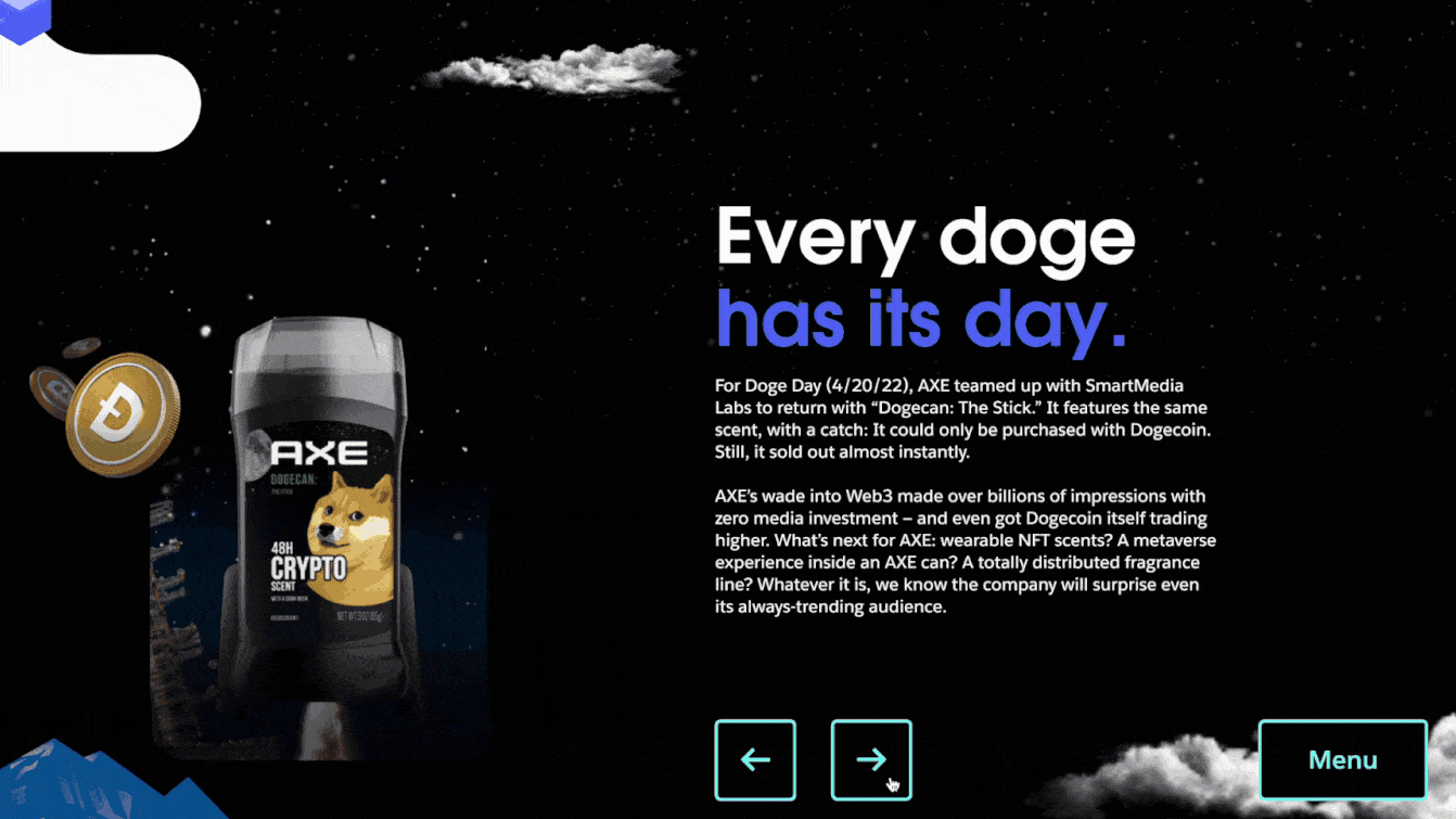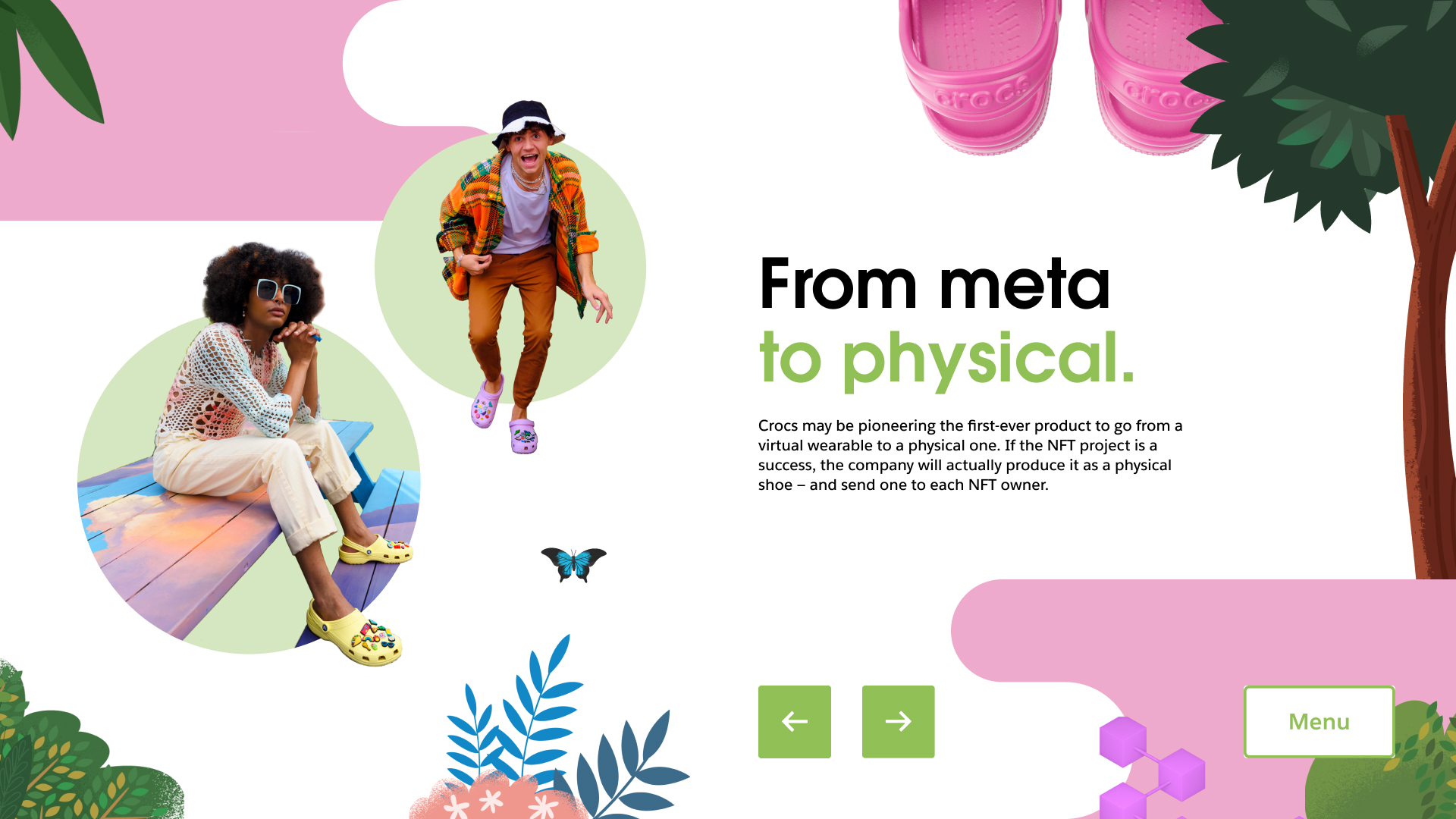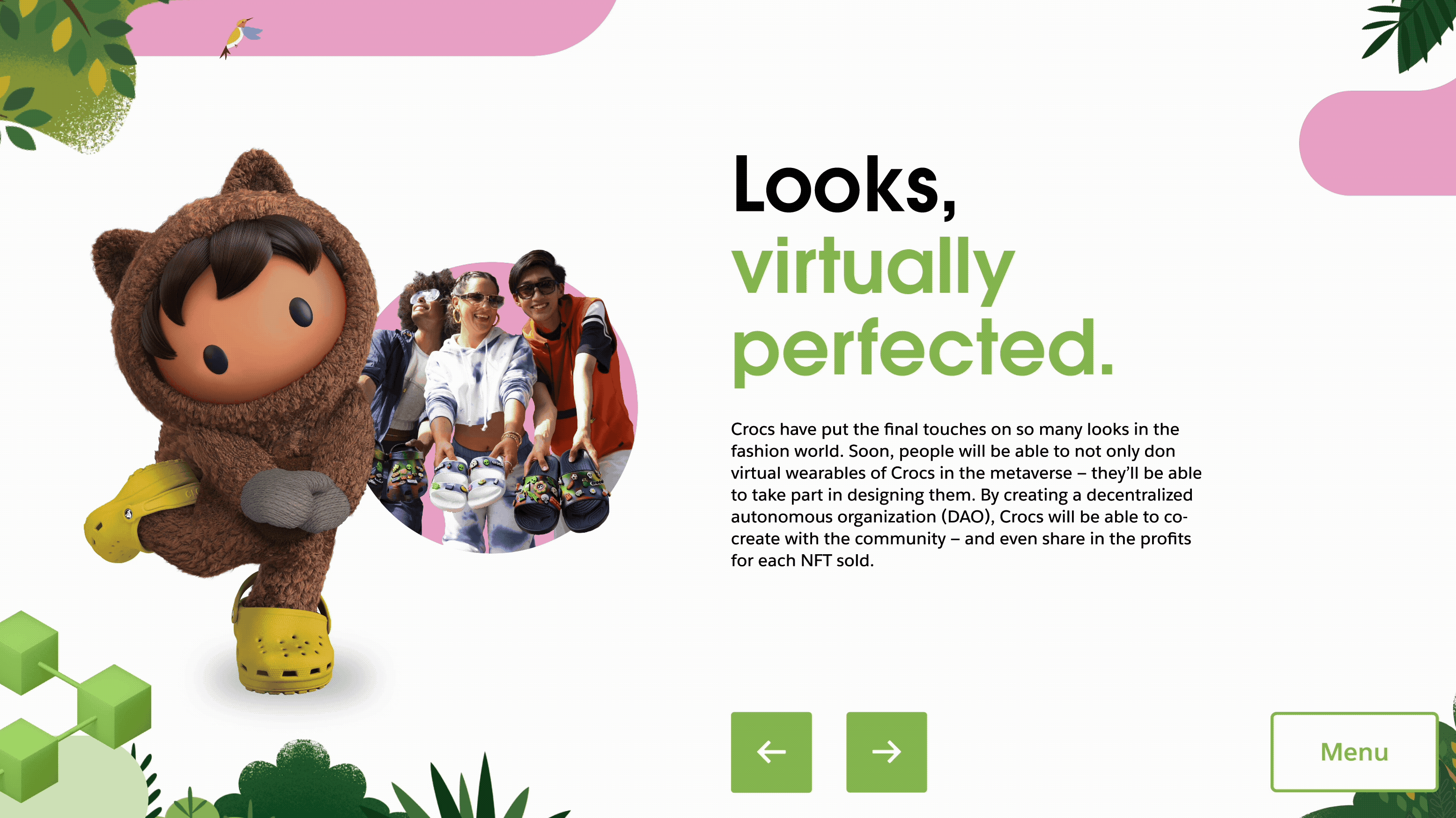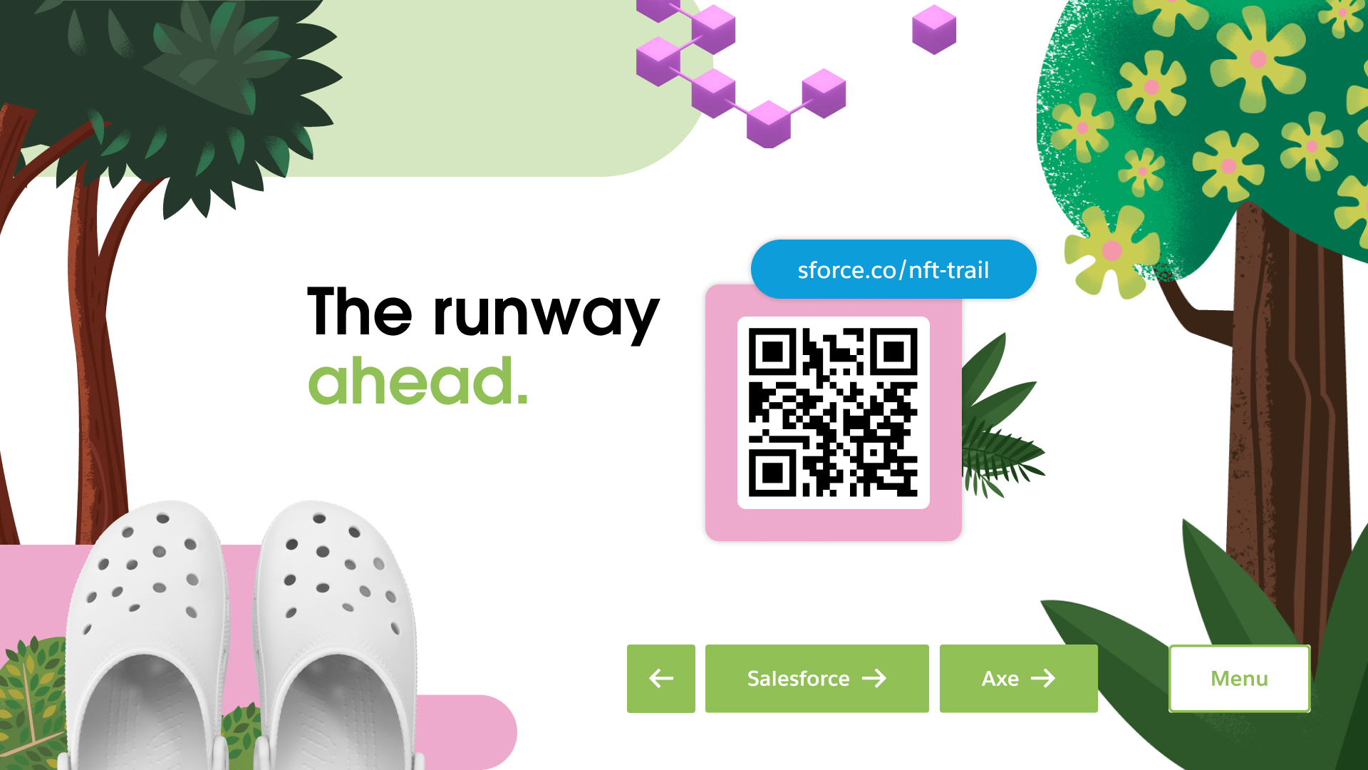 A prototype NFT experience that unified the identities of Salesforce, Crocs, and Axe into one cohesive and interactive journey. Designed in Figma with custom animations and motion flows that elevated brand storytelling.